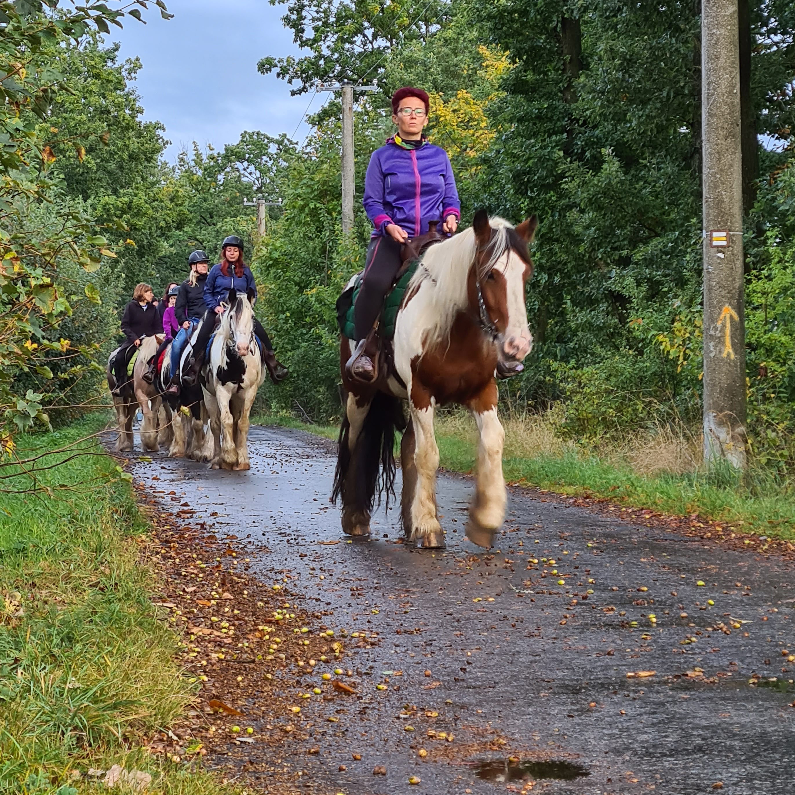 Pro Vás to znamená dobře si vybrat, kde tuto první zkušenost absolvovat. A my máme naprosto skvělé učitele – 19 koní plemene Irský Cob. Léty jsme si ověřili, že není lepšího plemene na učení ježdění, protože tito mohutní koně zůstávají celý život velmi trpělivými a něžnými obry. Kombinujeme jízdu bez sedla, na dece s madlem, bez třmenů i se třmeny. Přizpůsobíme se tomu, co Vy umíte a preferujete. Protože se lidé k nám po první zkušenosti vracejí víme, že každý potřebuje svůj čas na seznámení se s koněm a my Vám ho dopřejeme.